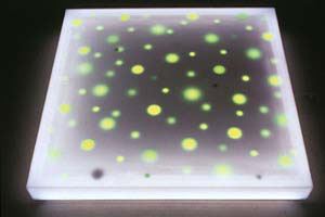 Green light-emitting diodes ("LED") go out when plastic scintillator