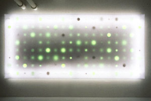 Green light-emitting diodes ("LED") go out when plastic scintillator